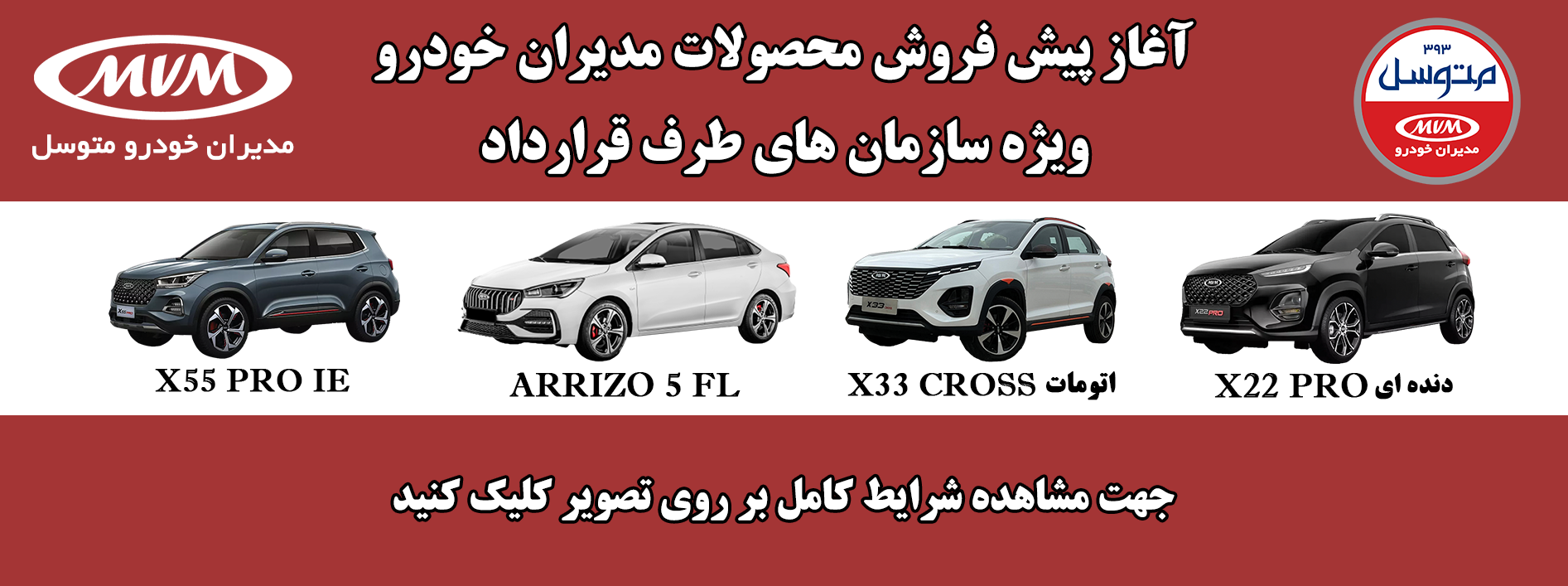 BAC X3 PRO 1,420,000,000 تومان MVM X5 0,000 تومان MVM M 5 Pro 0,000 تومان MVM X77 Elite 0,000 تومان تویوتا کرولا هیبرید تیپ Elite 2,015,714,000 تومان چانگان CS55 پلاس 2,266,800,000 تومان چانگان CS۳۵ پلاس تیپ 3 1,411,820,000 تومان چانگان CS35 پلاس تیپ 2 1,143,488,000 تومان 441P(CS۵۵ Plus - SKD) 2,269,600,000 تومان پادرا پلاس دو کابين(کارون) 1,171,870,000 تومان پادرا پلاس تکسوز رادیال 927,556,000 تومان نیسان دوگانه سوز SVPDH 835,422,000 تومان