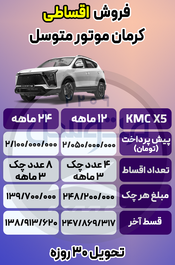 فروش اقساطی KMC X5 با اقساط 12 و 24 ماهه و تحویل 30 روزه