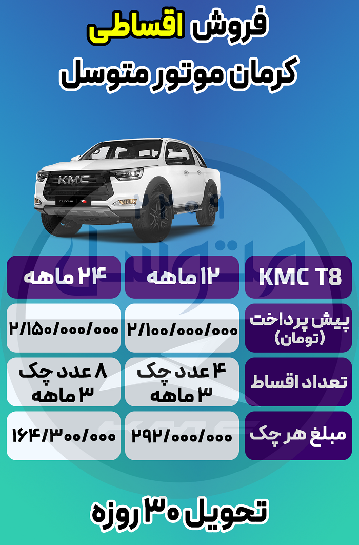 فروش اقساطی خودرو KMC T8 با بازپرداخت 12 ماهه و 24 ماهه با تحویل 30 روزه